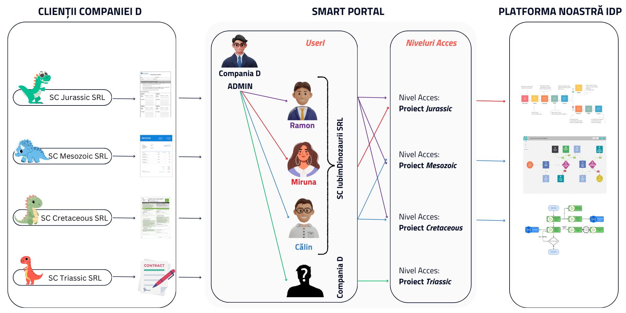 - Compania D poate gestiona alte documente și proiecte care nu sunt vizibile furnizorului terț WeLoveDinos SRL.
